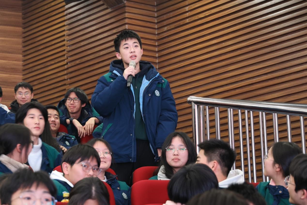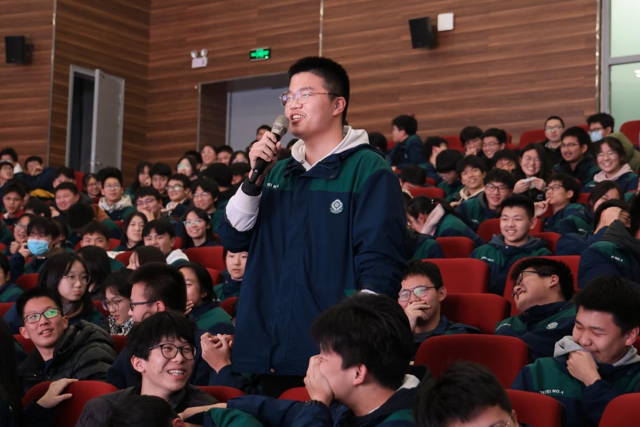 紧随其后,毕业于中国科学技术大学少年班、获得化学物理系博士学位的中国科学技术大学出版社少儿科普总编杜军和博士以《从量子力学到量子比特》为题带来精彩讲座。杜博士从九章量子计算机引入,生动阐述了量子的概念,量子力学“三大奥义”以及未来量子计算和量子通讯的发展等内容。讲座中,杜博士还多次提问,四中学生积极参与回答和讨论,气氛热烈。