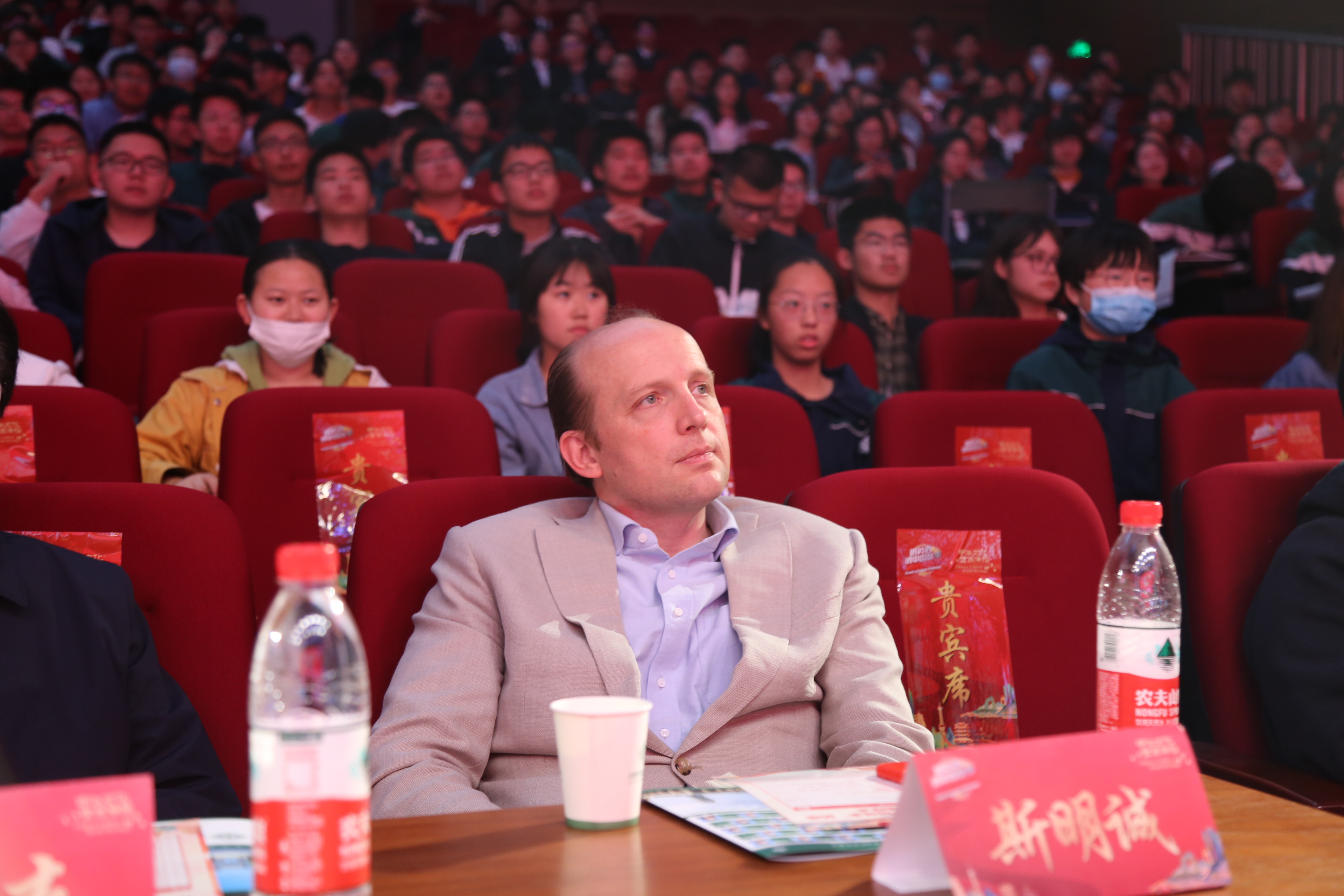 新航道中国故事研究院副院长David Symington(大卫•斯明诚)在合肥四中第三十一期四方论坛开讲“如何用英语讲好中国故事”主题报告。合肥四中学生会干部在斯明诚先生莅临后全程英语接待,带领他参观校园,给他留下了深刻印象。斯明诚先生在活动中与合肥四中学生进行了亲切的互动,并高度赞扬了合肥四中学生高水平的英语素质。
