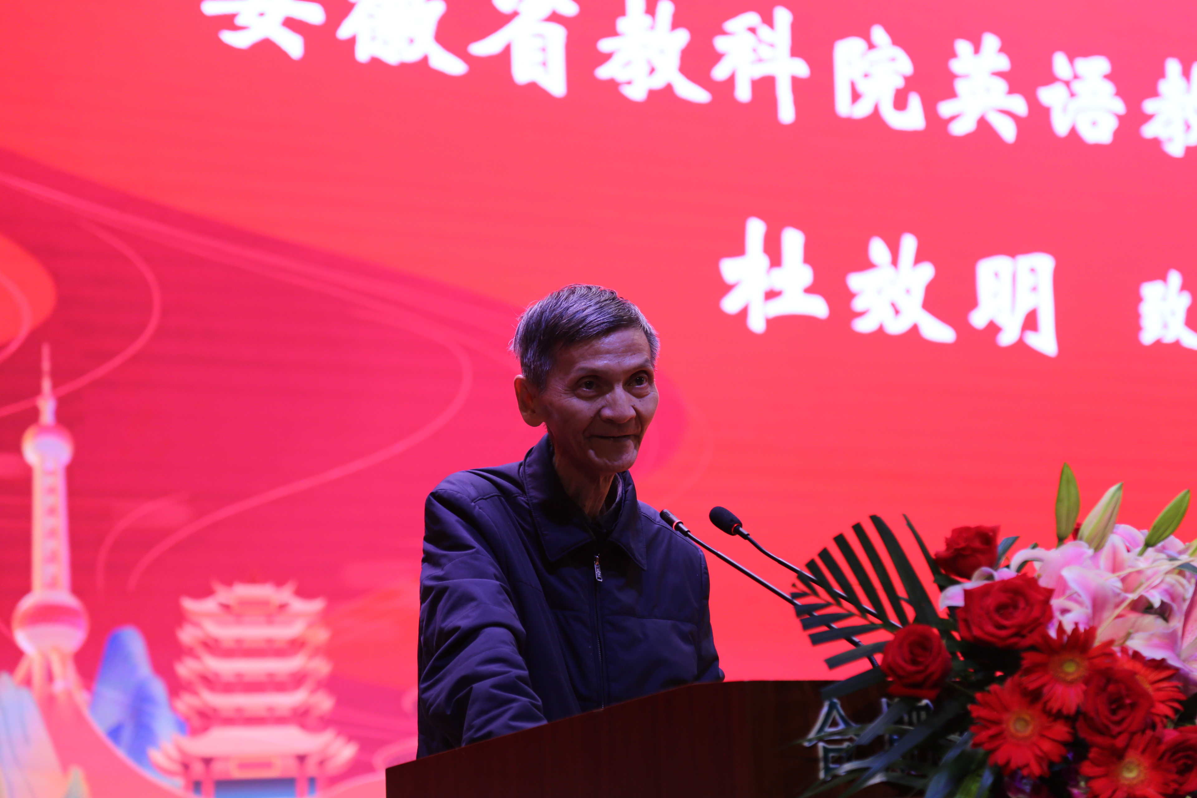 原安徽省教育科学研究所外语室主任、安徽省英语教研员杜效明用英语和合肥四中师生进行了亲切互动,杜老师在致辞中充分肯定了本届活动的重要意义,他指出,当代青少年承担着向世界介绍中国的历史使命,要在今后的学习中,学好本领,向世界介绍我国发展取得的各项成就。