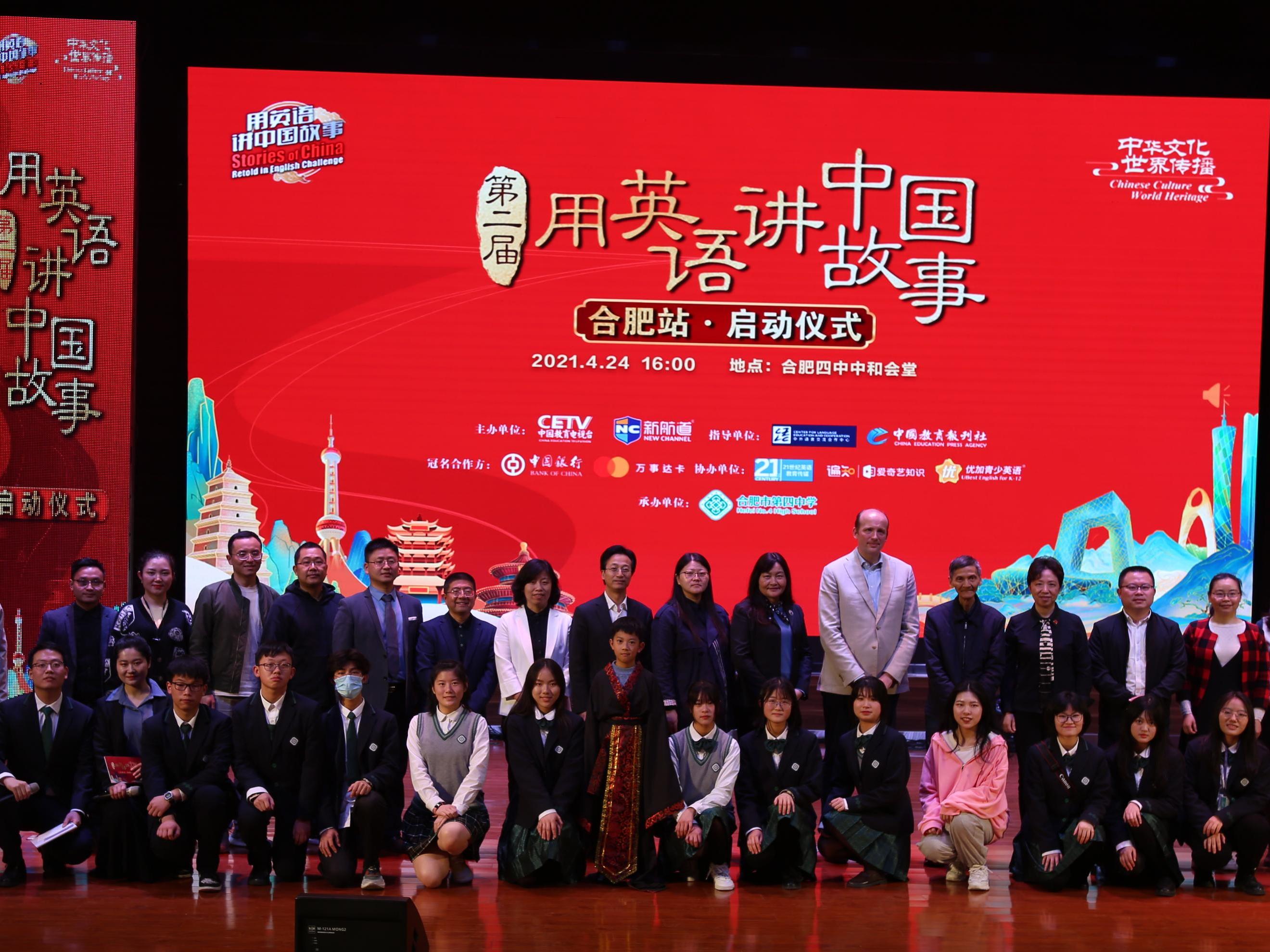 第二届“用英语讲中国故事”活动,由中国教育电视台与新航道国际教育集团再度联袂发起,中外语言合作交流中心,中国教育报刊社担任指导单位,面向全国青少年学生,用英语表达与弘扬优秀中华文化的素质教育活动,旨在通过英语演讲激发青少年的创意与活力,为广大青少年提供一个弘扬中华优秀文化、与世界交流的平台,期待合肥四中青年在今后的学习中不断提高国际化视野,提升自身综合能力,用英语讲好中国故事,向世界展示四中青年的良好形象!