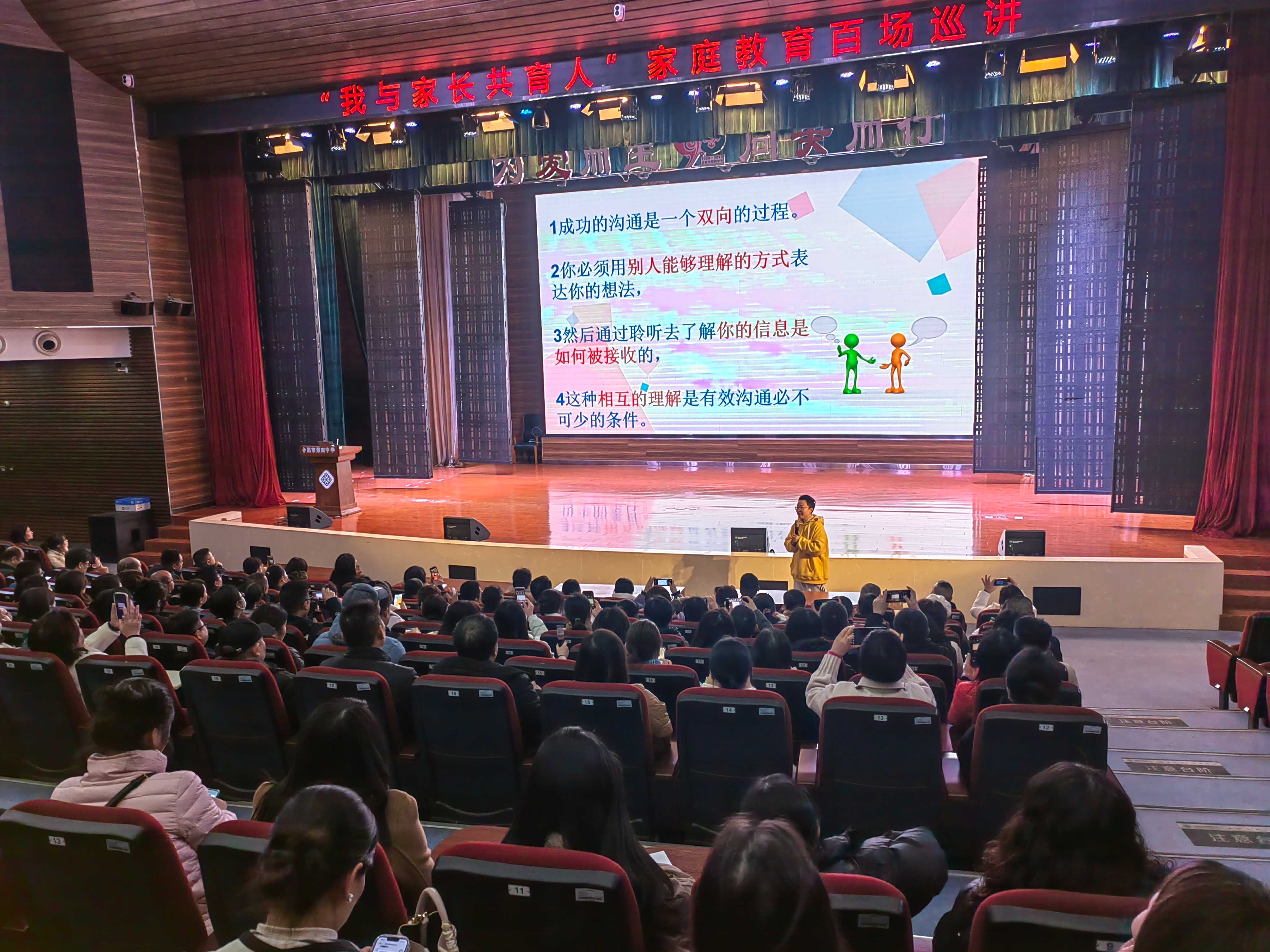 2024年12月6日下午,合肥四中迎来了一场独具匠心的家庭教育讲座。本次讲座的主题是“和谐亲子沟通”,旨在帮助家长们更好地理解孩子,促进家庭教育的健康发展。主讲人是来自合肥九中的资深教育专家张桦老师,她以其丰富的教育经验和独到的教育理念,吸引了合肥四中高一、高二、高三全体学生家长以及本校教师的积极参与。