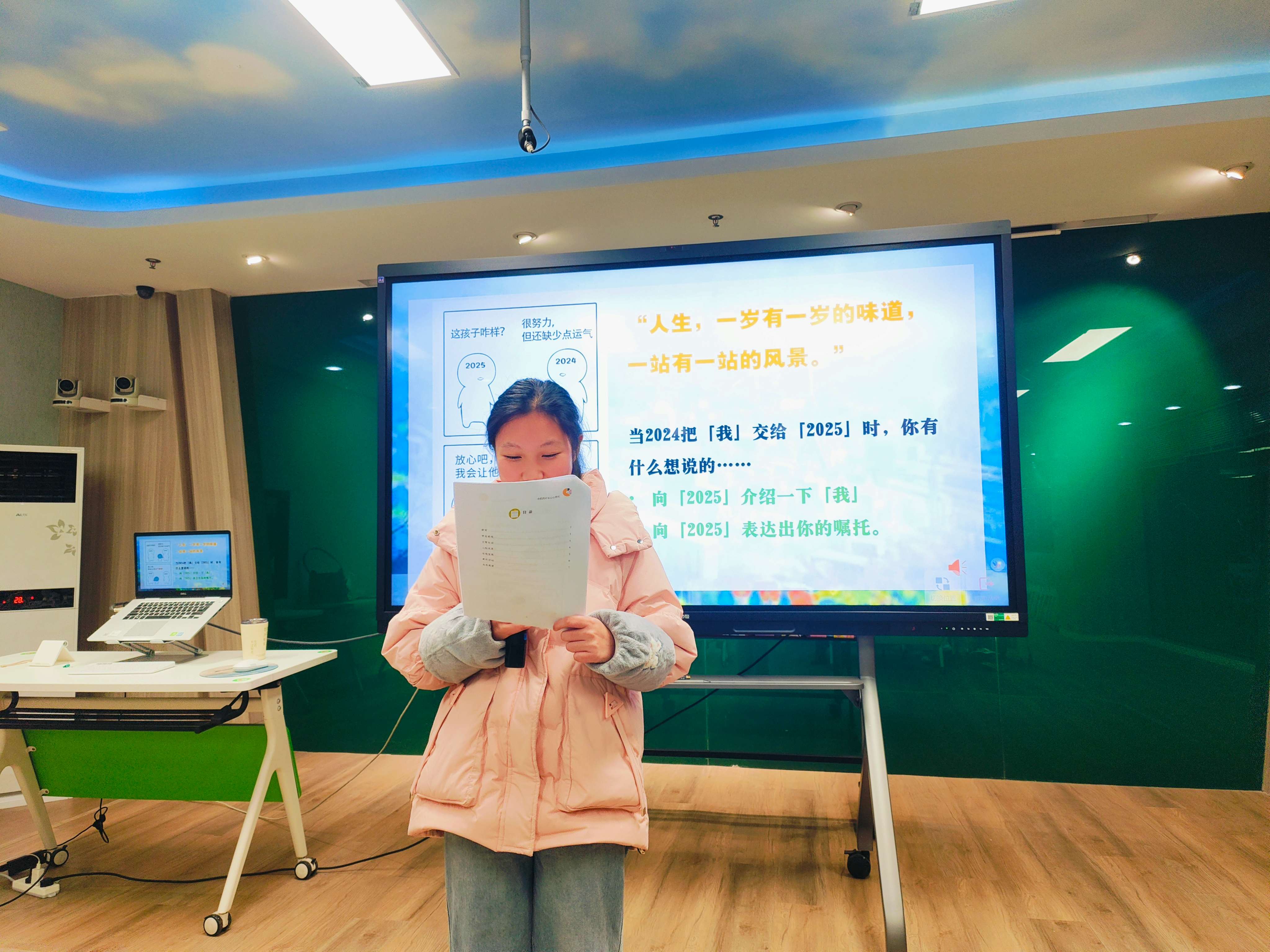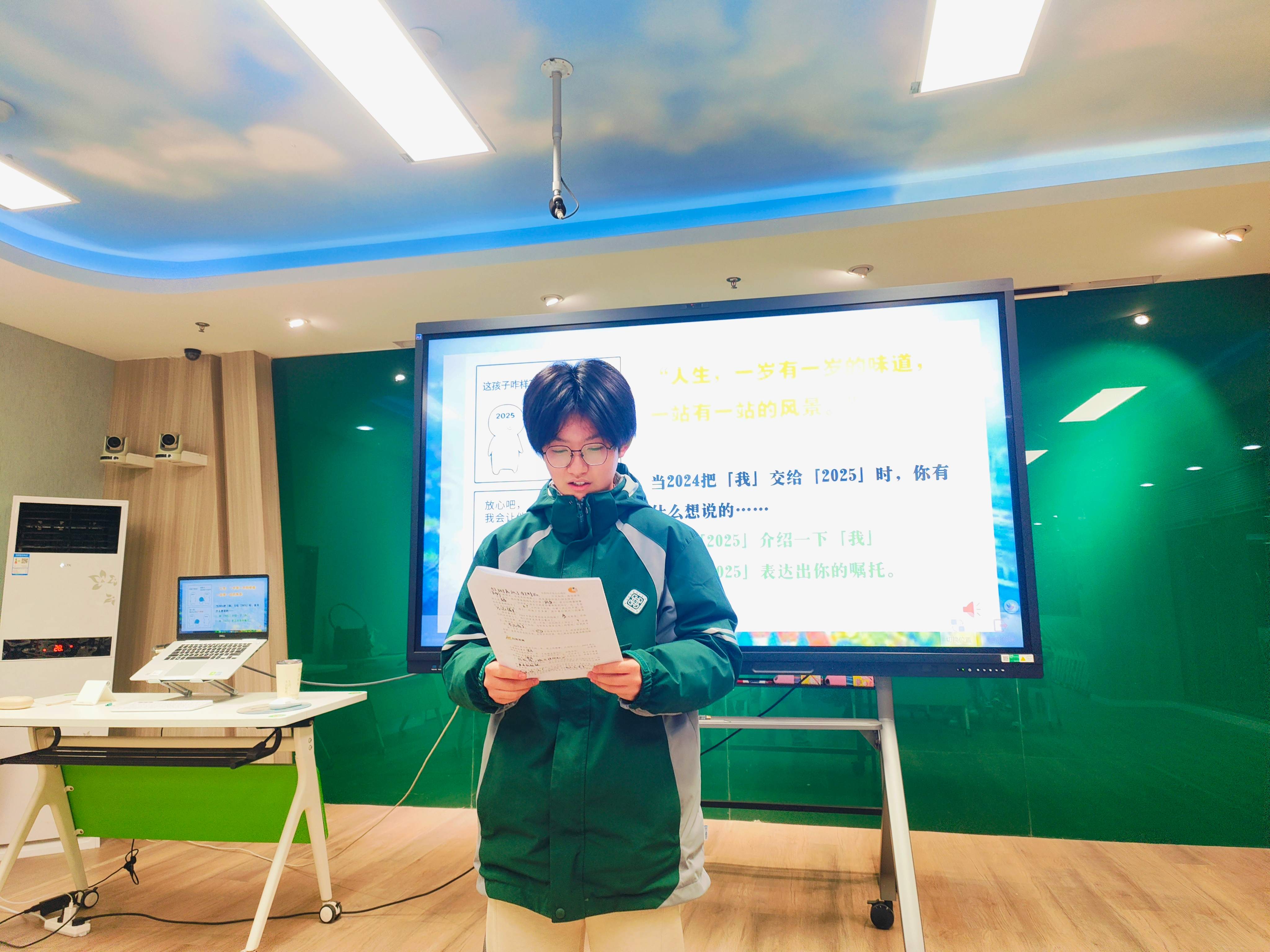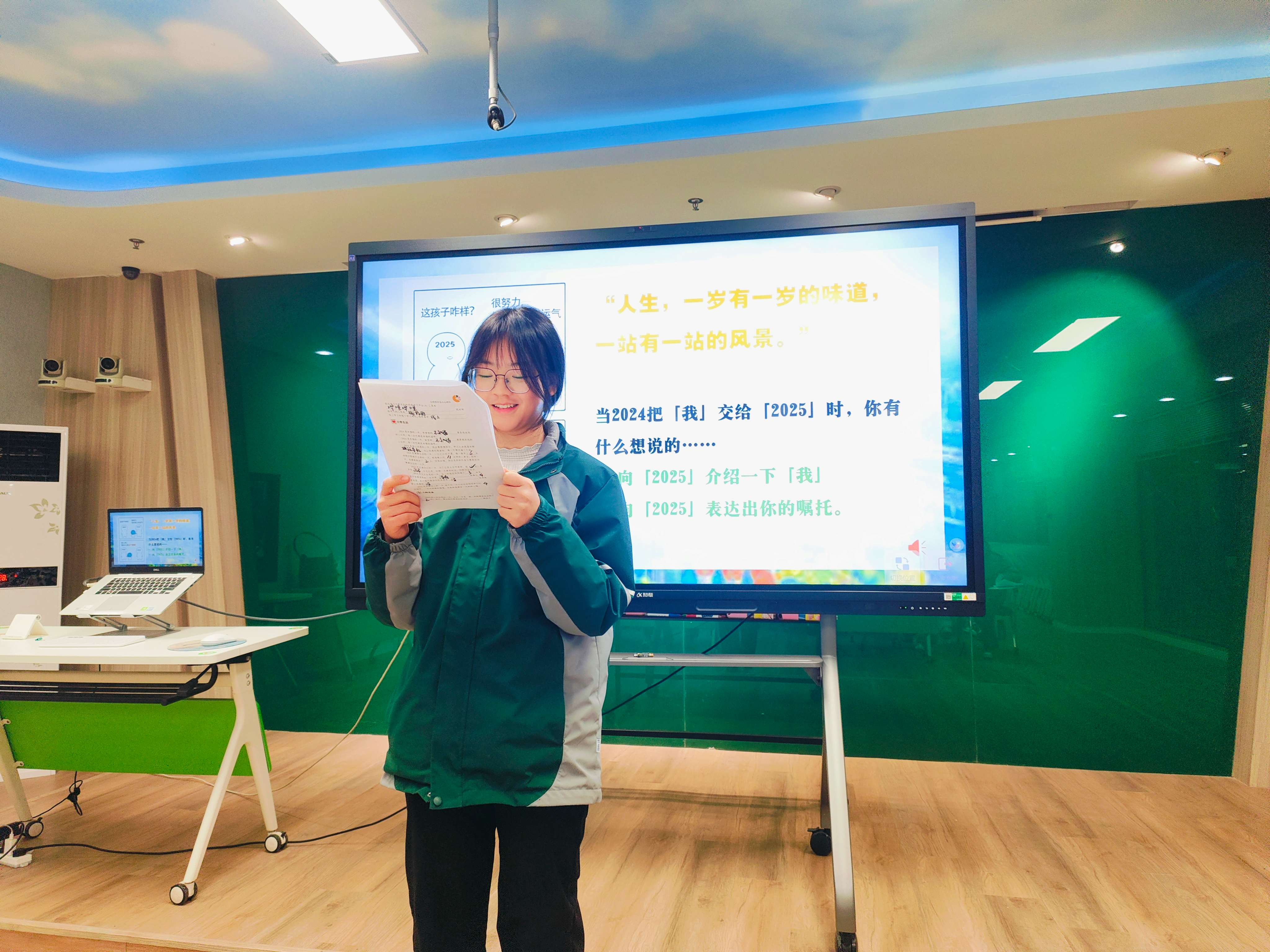 紧接着,在黄莹老师的指导下,同学们借助精心设计的年度成长报告,深入学业、生活、人际、自我发展、课外活动及未来展望六大领域,开启一场与自我的深度对话。他们如时光拾荒者,细细梳理2024年365天的点点滴滴,探寻成长轨迹,剖析自我得失,于字里行间勾勒出独一无二的2024年成长全景图。