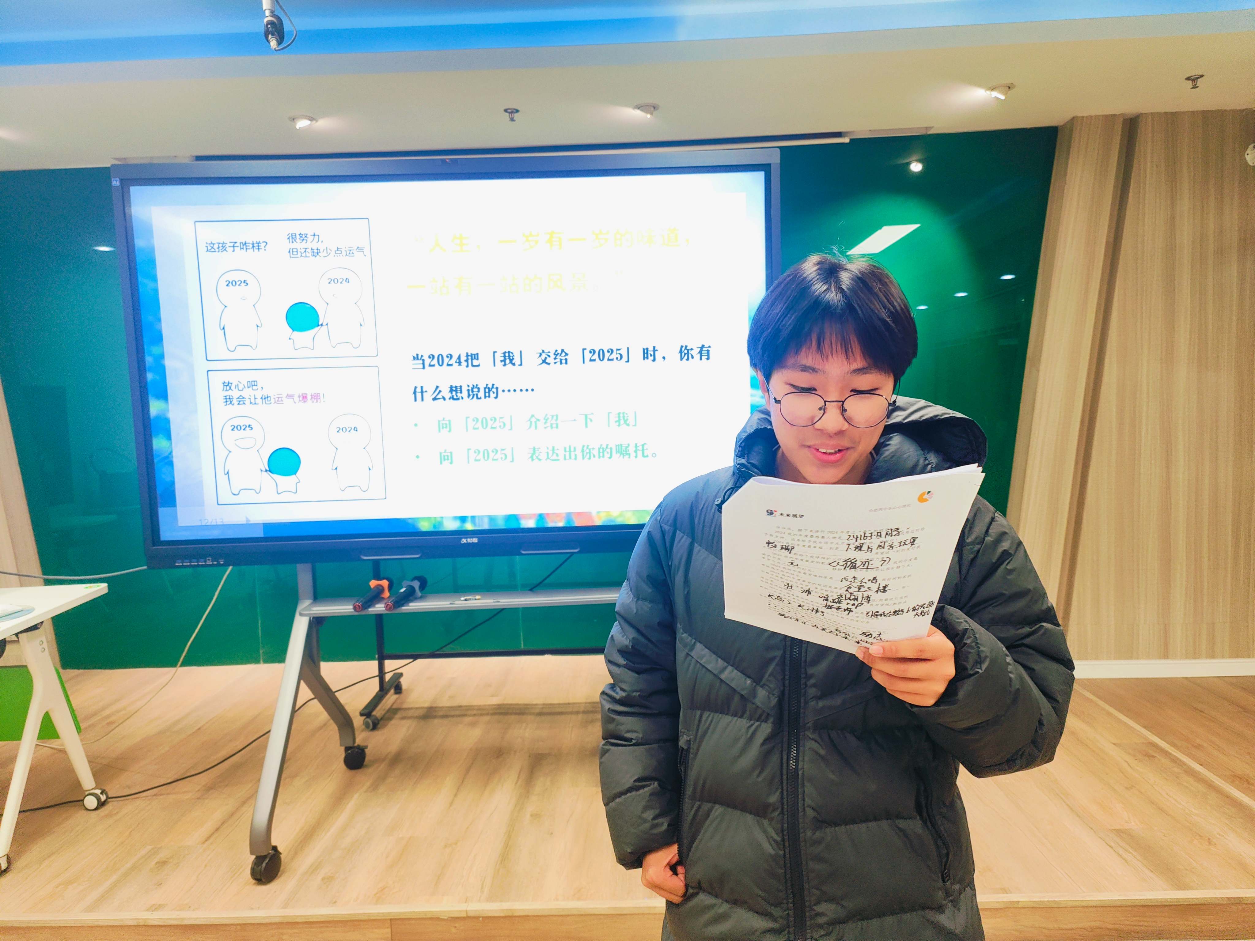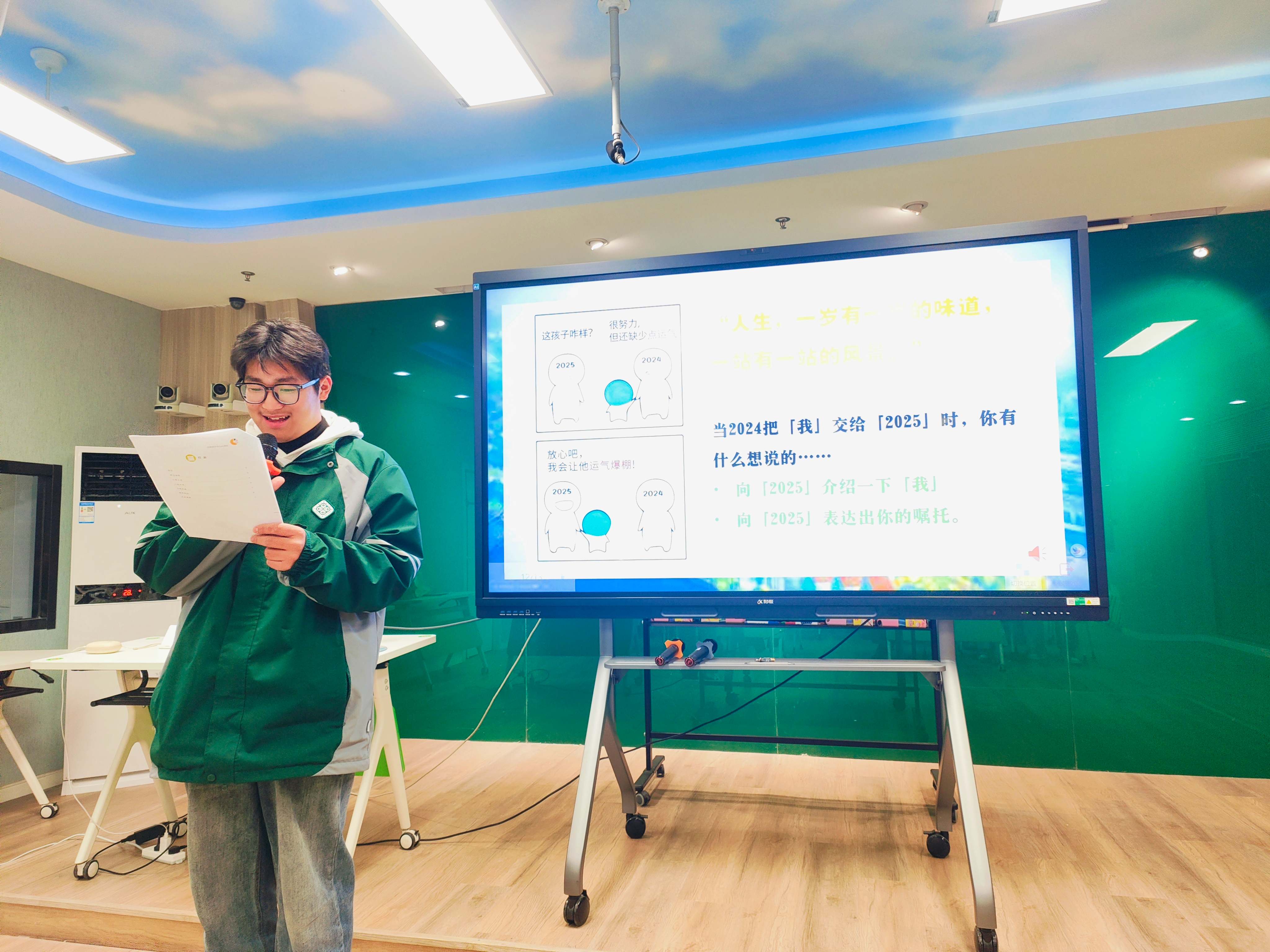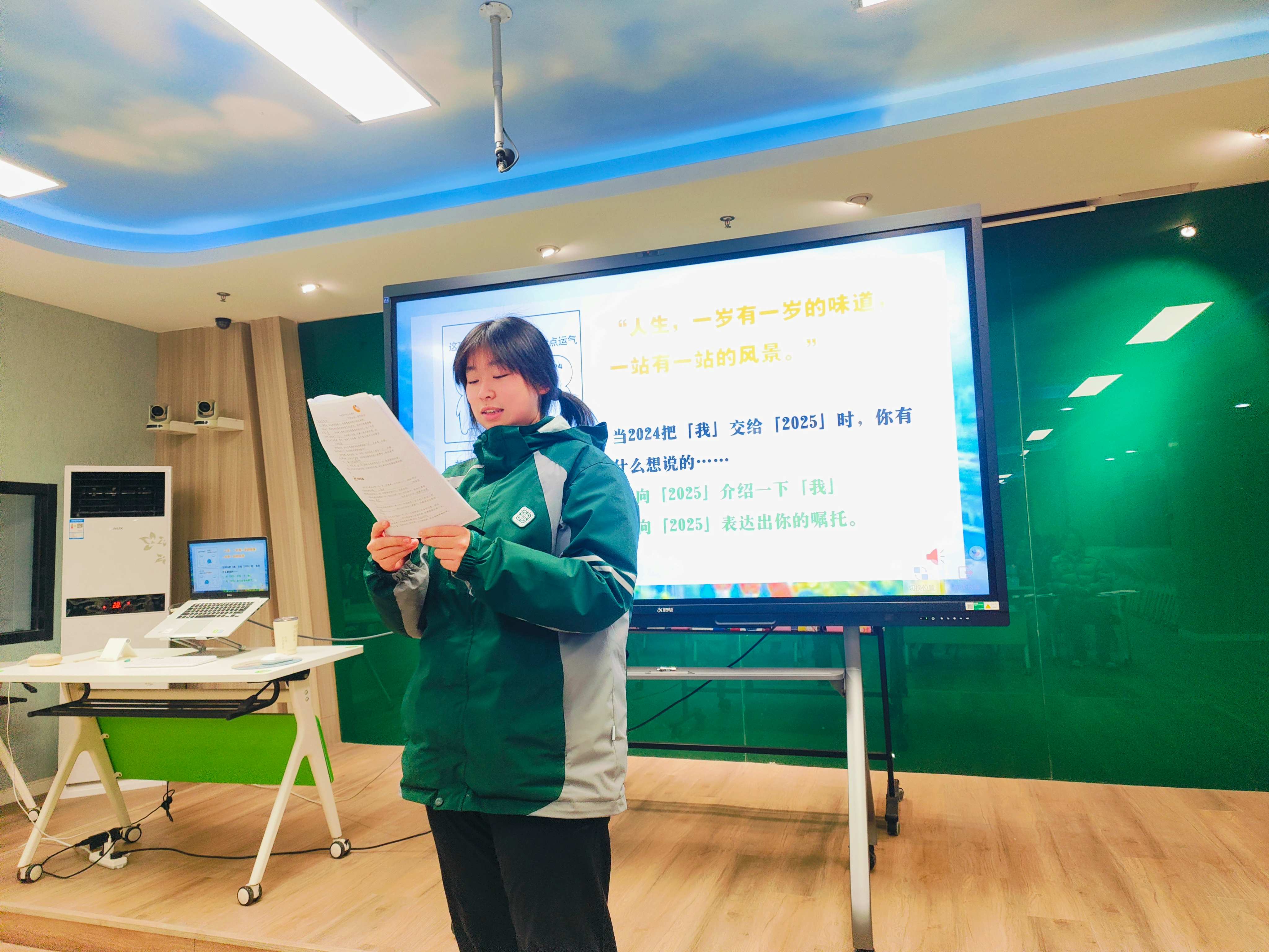 紧接着,在黄莹老师的指导下,同学们借助精心设计的年度成长报告,深入学业、生活、人际、自我发展、课外活动及未来展望六大领域,开启一场与自我的深度对话。他们如时光拾荒者,细细梳理2024年365天的点点滴滴,探寻成长轨迹,剖析自我得失,于字里行间勾勒出独一无二的2024年成长全景图。