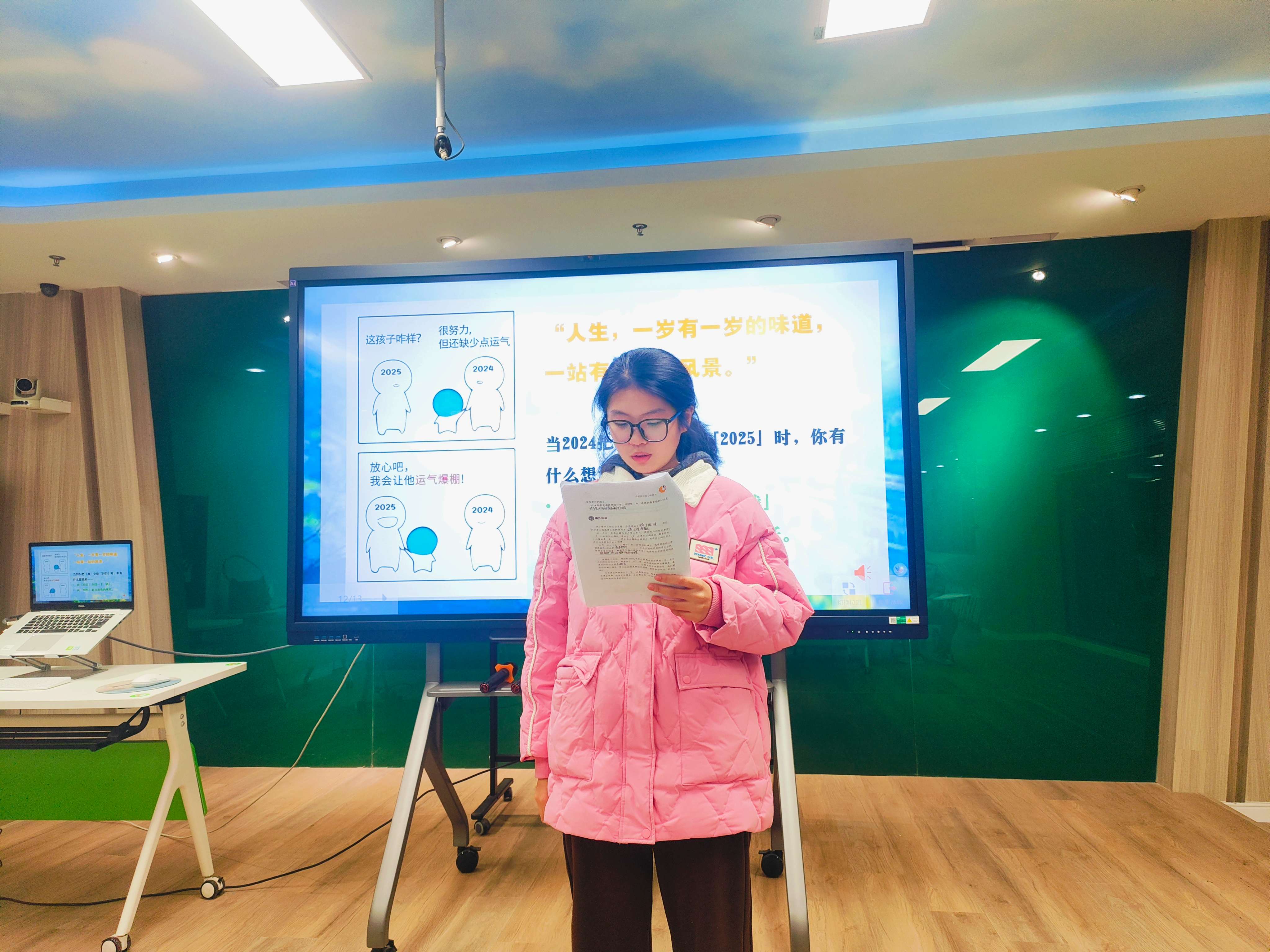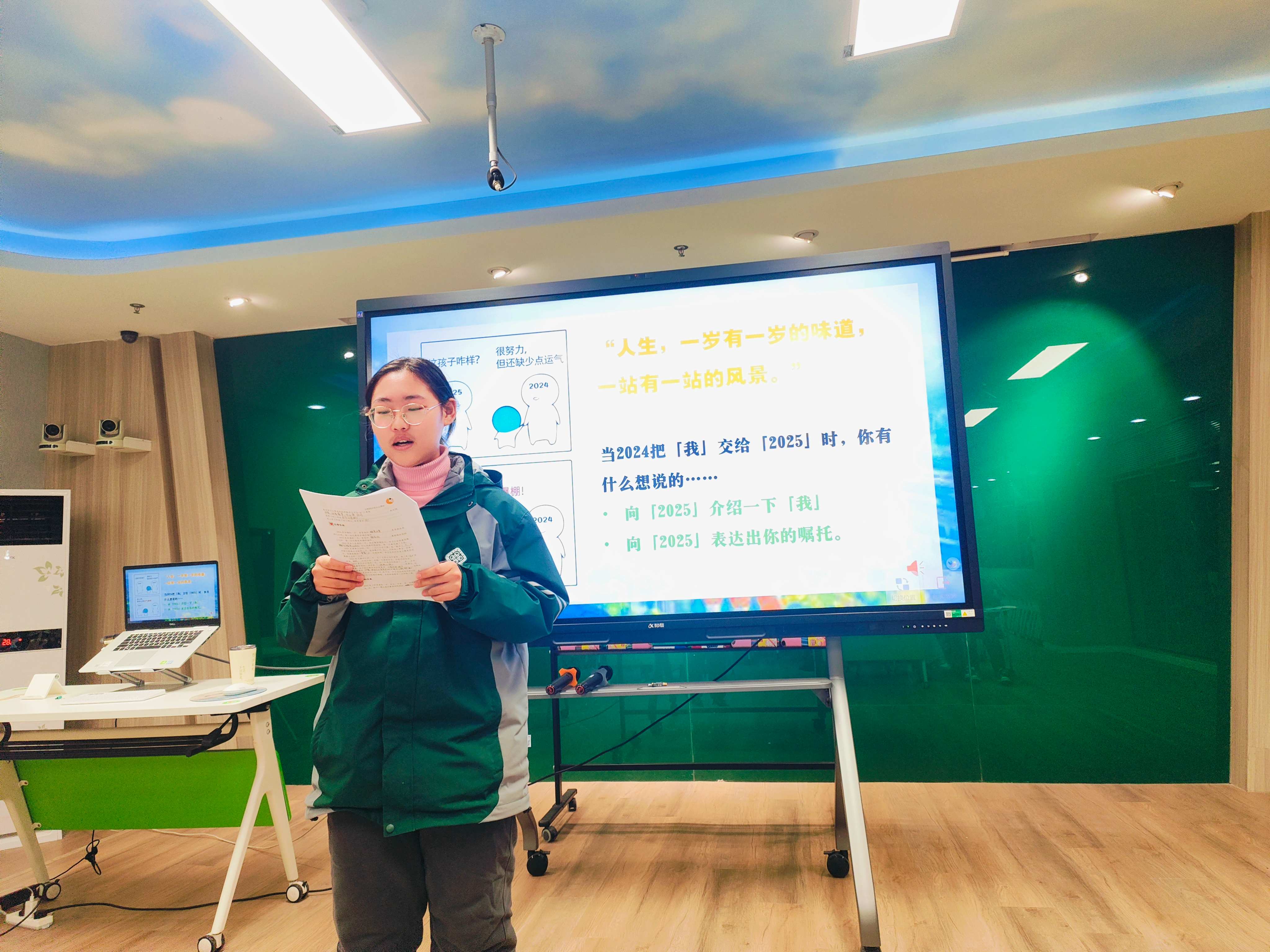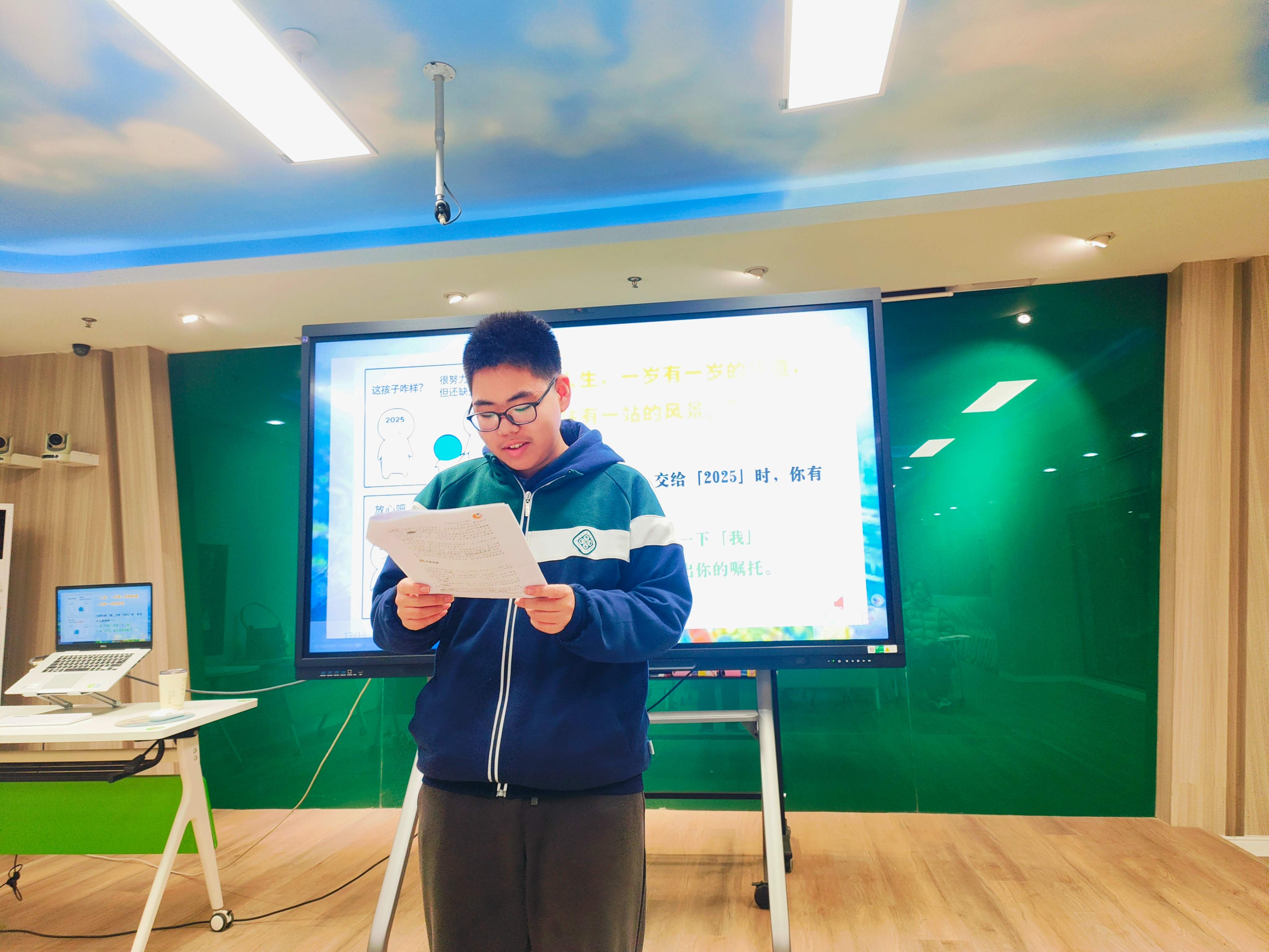 一岁有一岁的味道,一站有一站的风景。社团指导老师黄莹在总结环节,针对六大板块为同学们送上真挚期许。学业上,倡导以阅读为舟、运动为桨,在知识海洋破浪前行、积蓄能量;在生活与课外活动中,鼓励将过往遗憾化作春泥,勇敢重启征程、续写精彩;在人际维度,强调感恩之心为幸福源泉,以爱浇灌人际之花;自我发展层面,激励持续追逐热爱、心怀期待、勇攀高峰;未来展望时,叮嘱珍视生活细微幸福,守护感知美好的心灵触角,成长为理想中的模样。