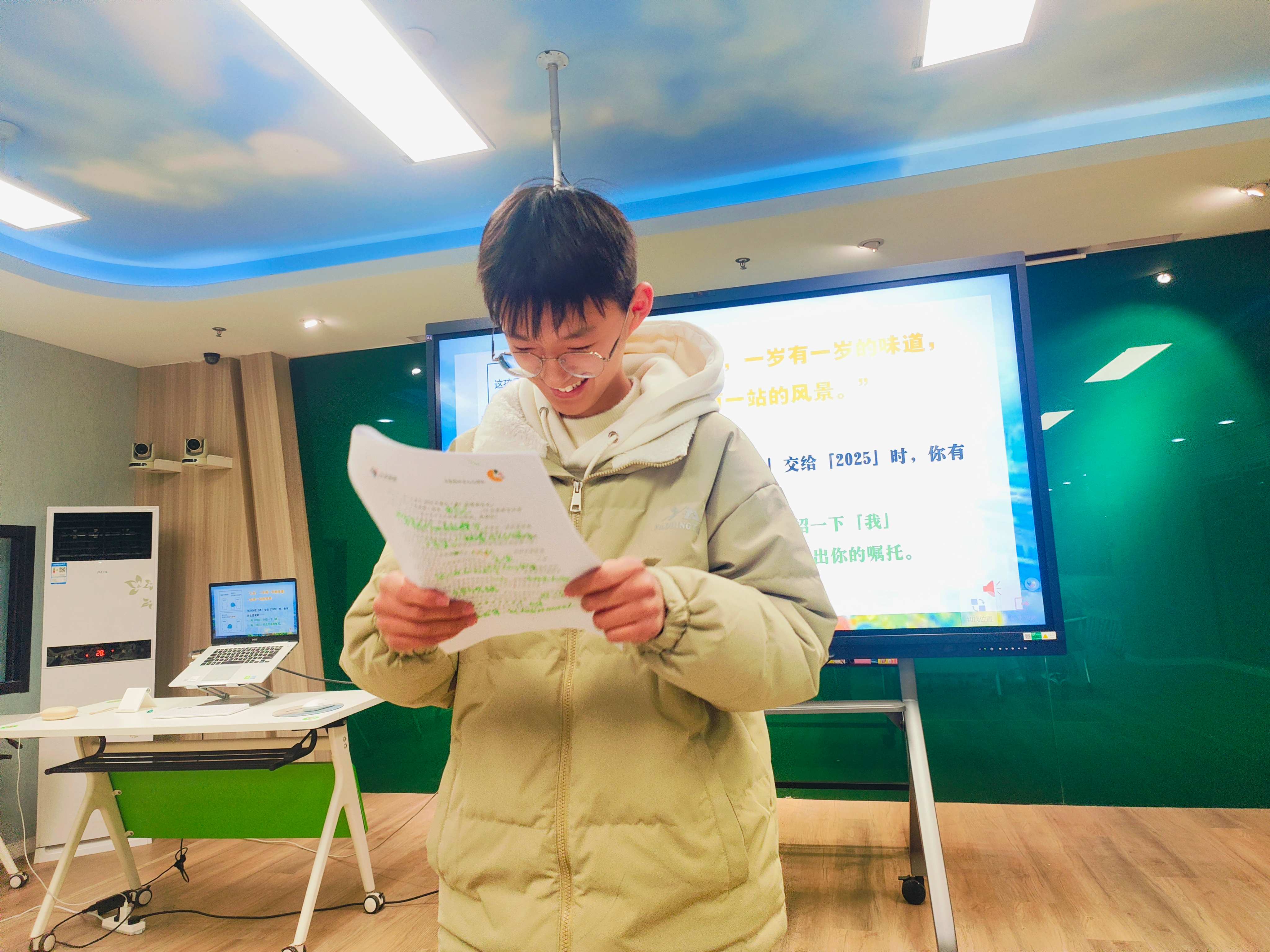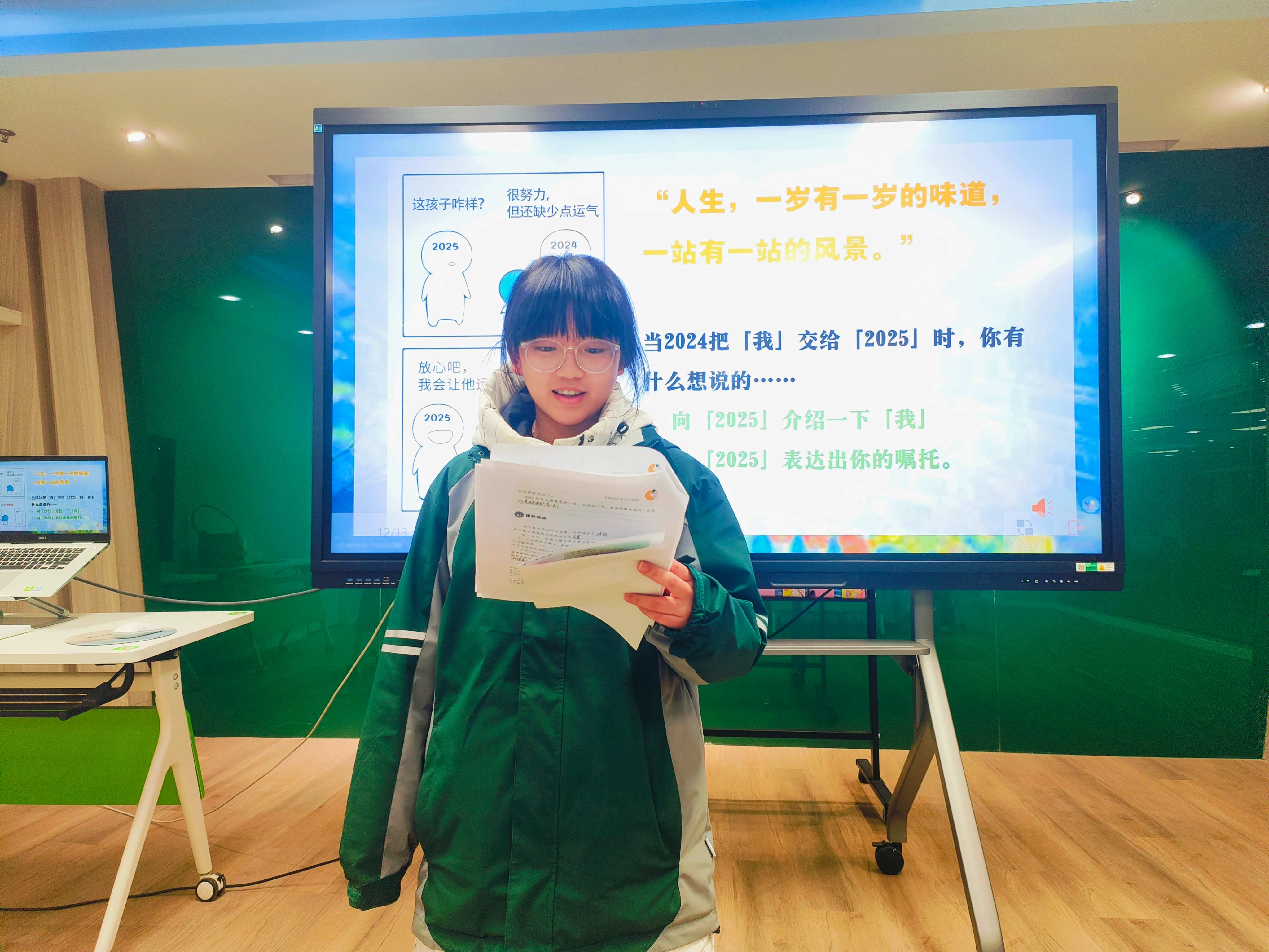 展望2025年,感恩与憧憬溢满心间。同学们深情分享心中挚爱,或旋律动人的歌曲或启迪心灵的书籍或香甜暖心的奶茶或静谧美好的校园角落,偶像的力量如灯塔指引方向,敬爱的老师则是成长路上的智慧灯塔。带着这份热爱与感恩,大家立下新年宏愿,新习惯如每日英语背诵打卡、读书打卡等将助力成长,学业进步、人际提升等目标清晰明确,成为迈向新岁的坚实步伐。