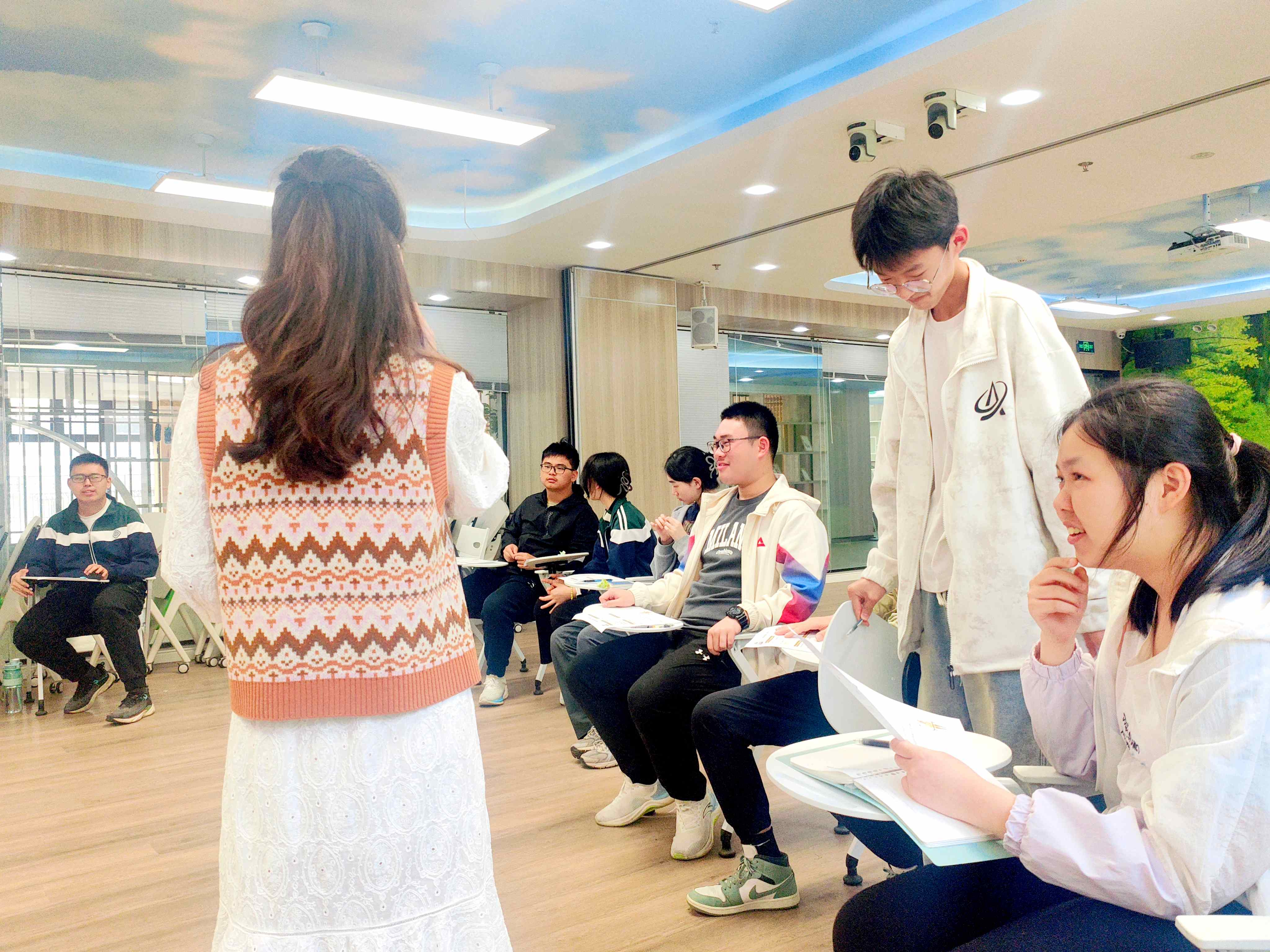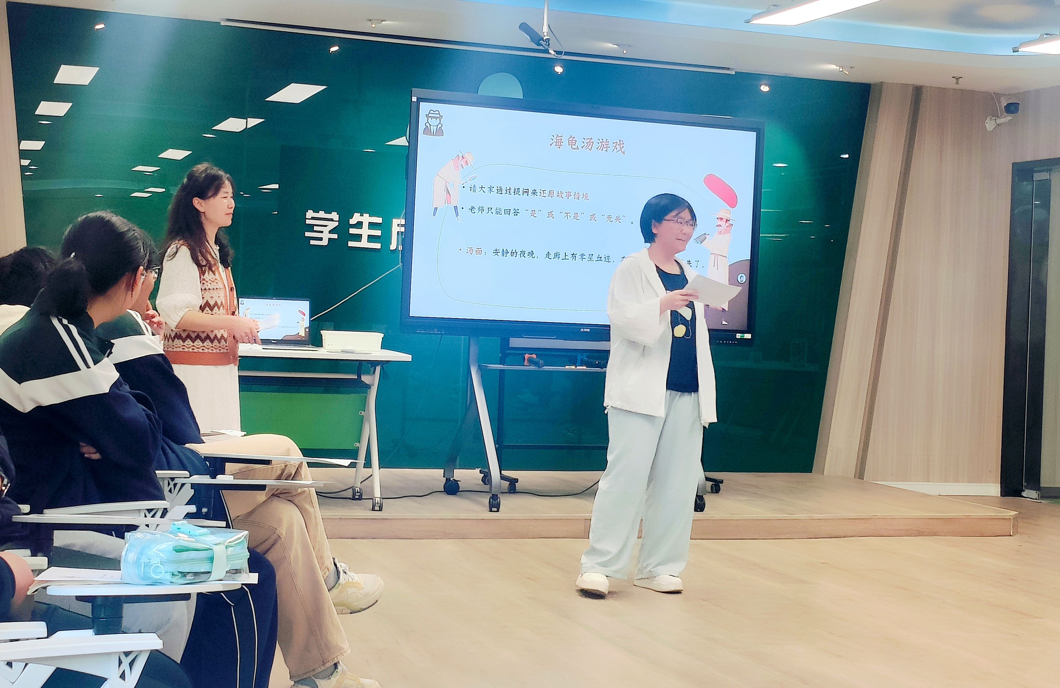 悬疑开场,解密无声呼救。课程伊始,黄莹老师以“海龟汤”推理游戏引入情境,同学们化身“心理侦探”,通过封闭式提问抽丝剥茧,最终揭开谜底。