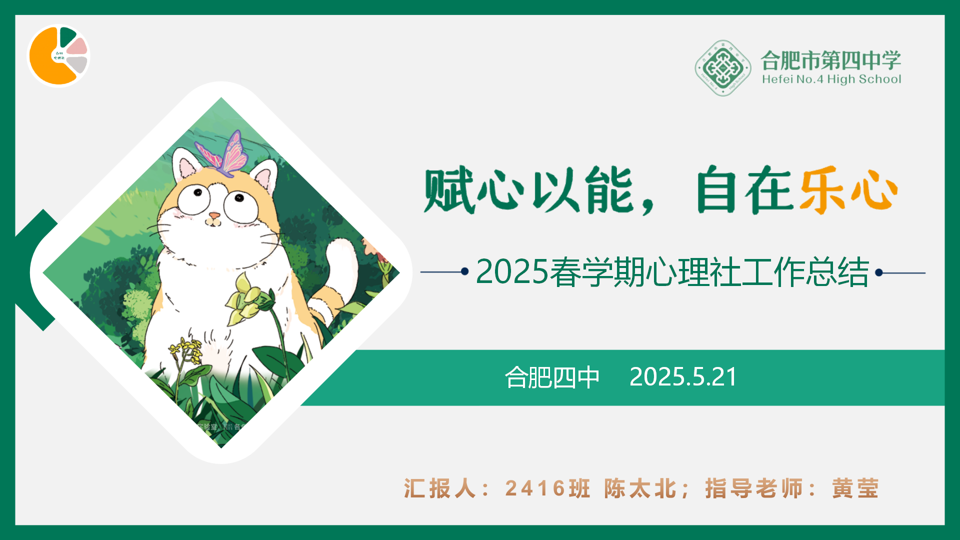 2025年5月21日,合肥四中乐心心理社在中和会堂参加了2025春学期社团总结汇报会。社团指导老师黄莹、全体社员共同参与,回顾本学期成长足迹,展望未来发展方向。本次乐心心理社汇报,由2416班陈太北同学负责。