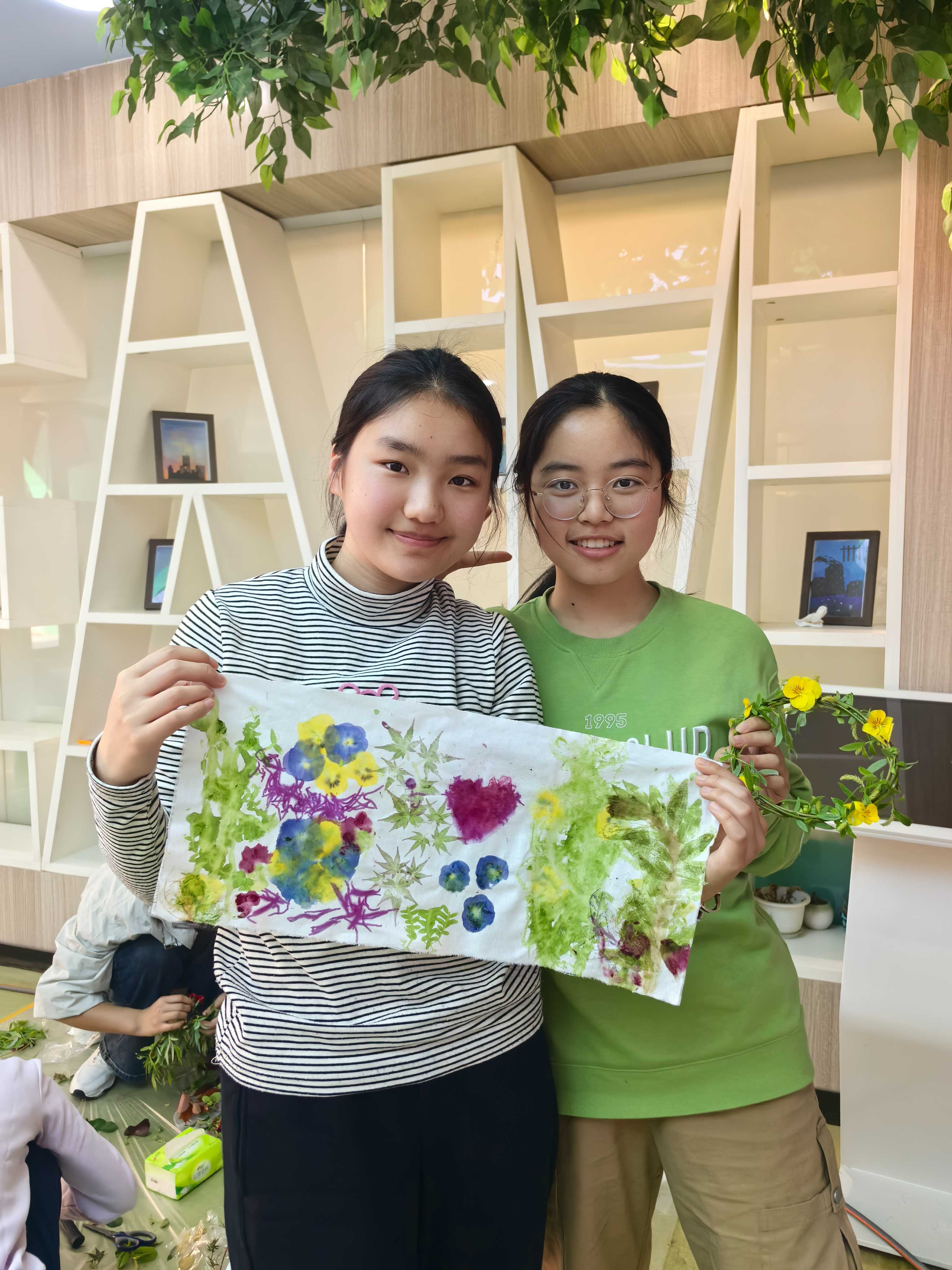 以美润心:植物拓印、蓝晒书签、干花拼贴等艺术创作,将自然之美转化为个性化作品,激发审美创造力。学生作品装点校园走廊,形成“植物艺术长廊”,成为校园文化新亮点。