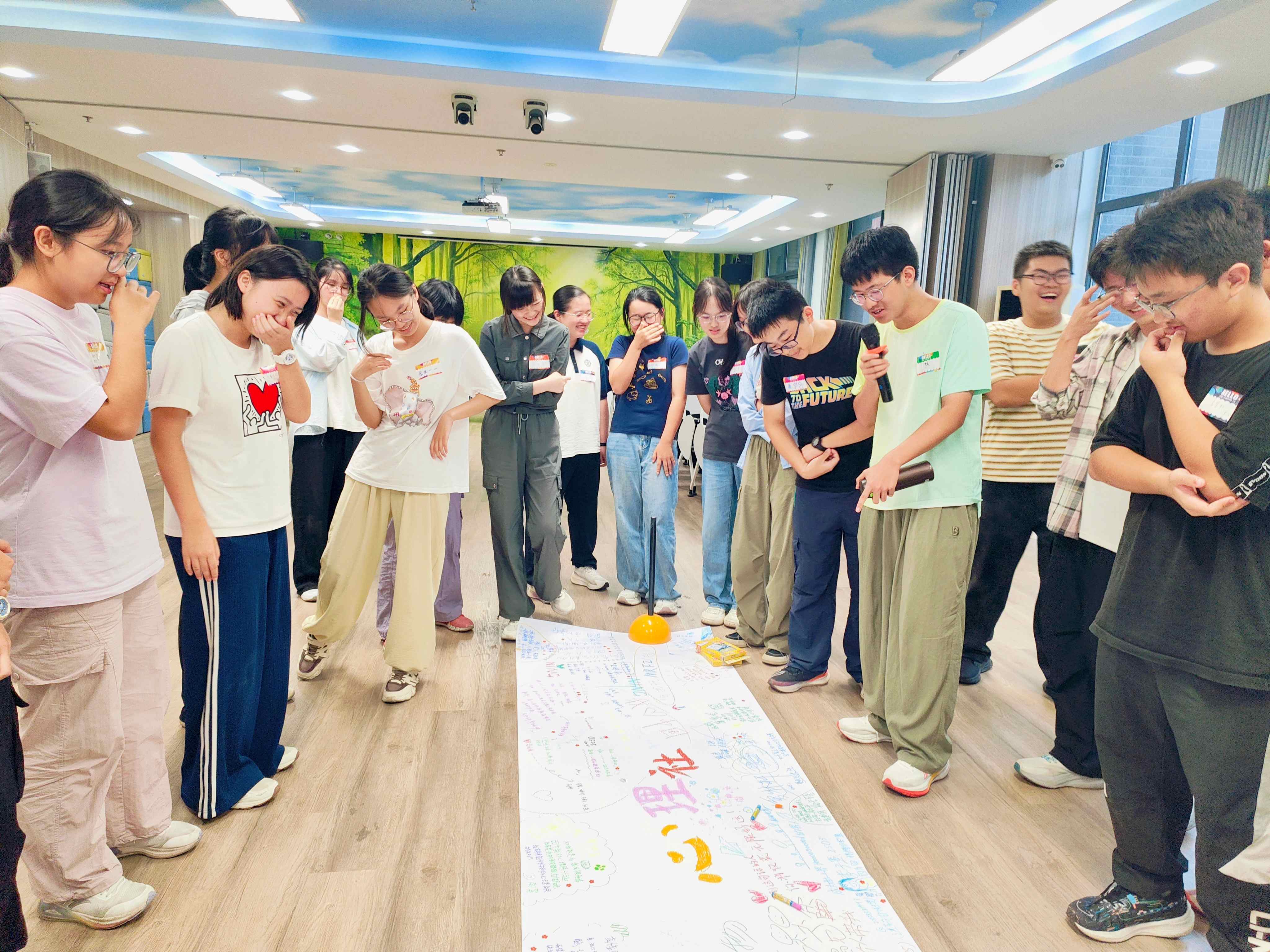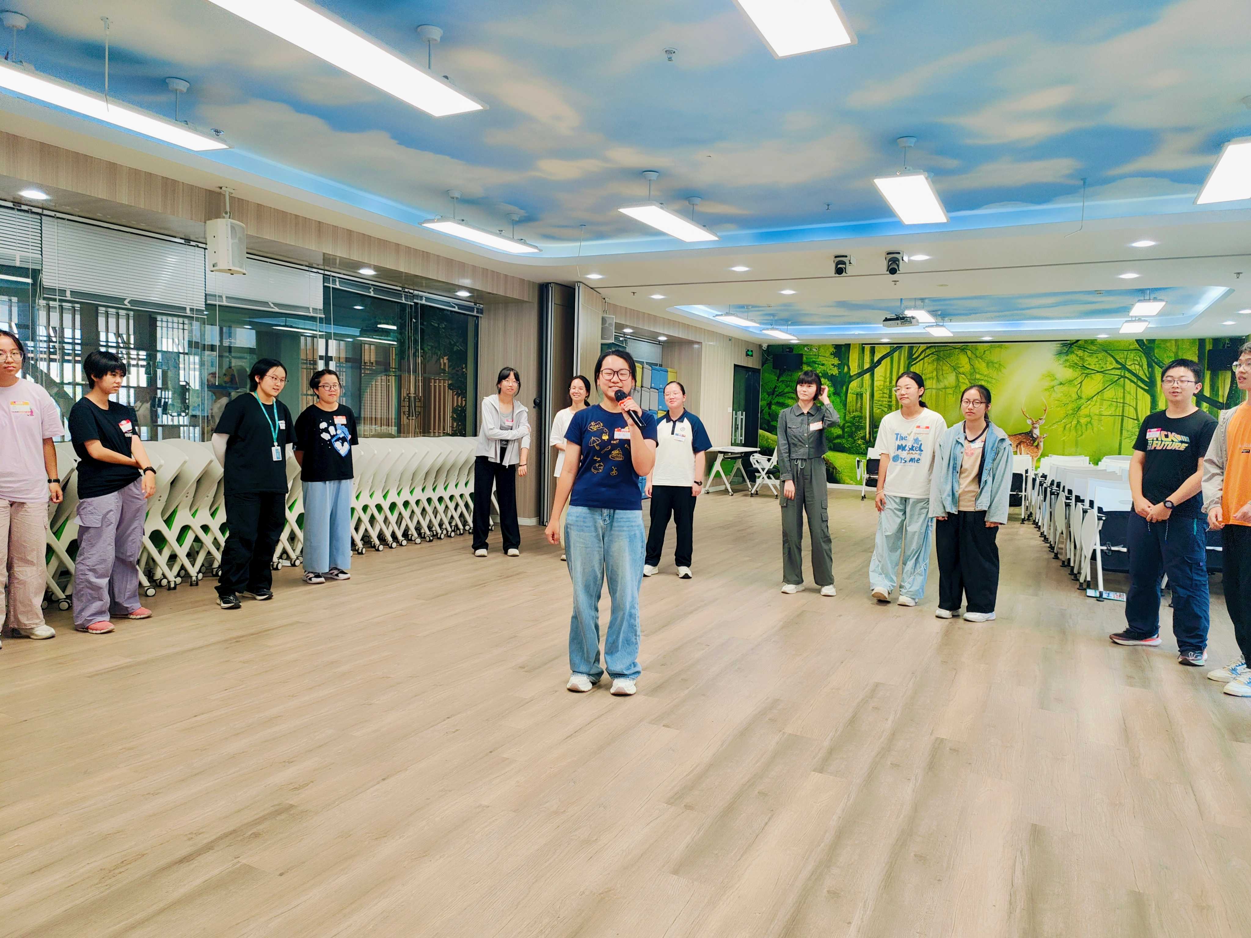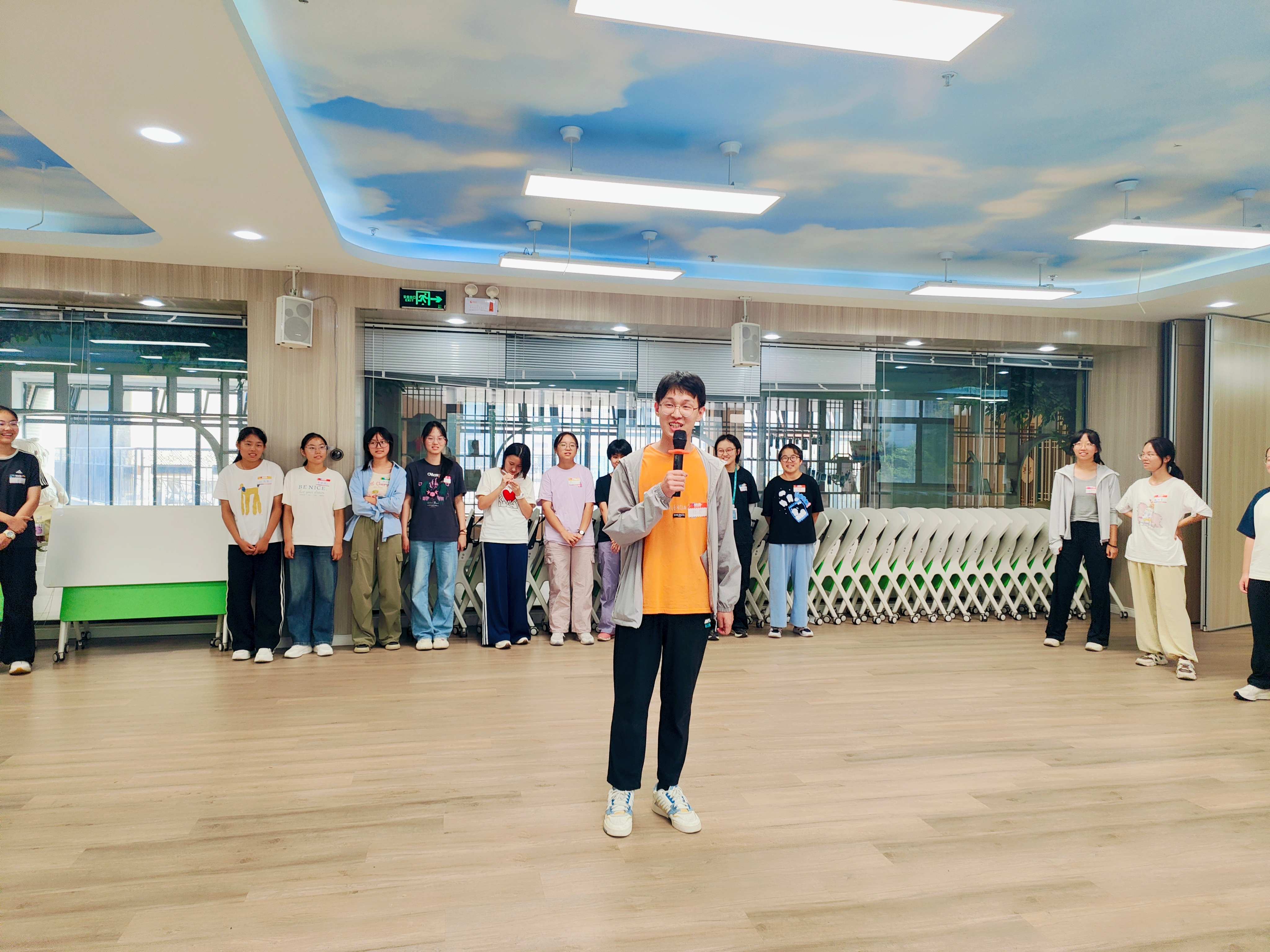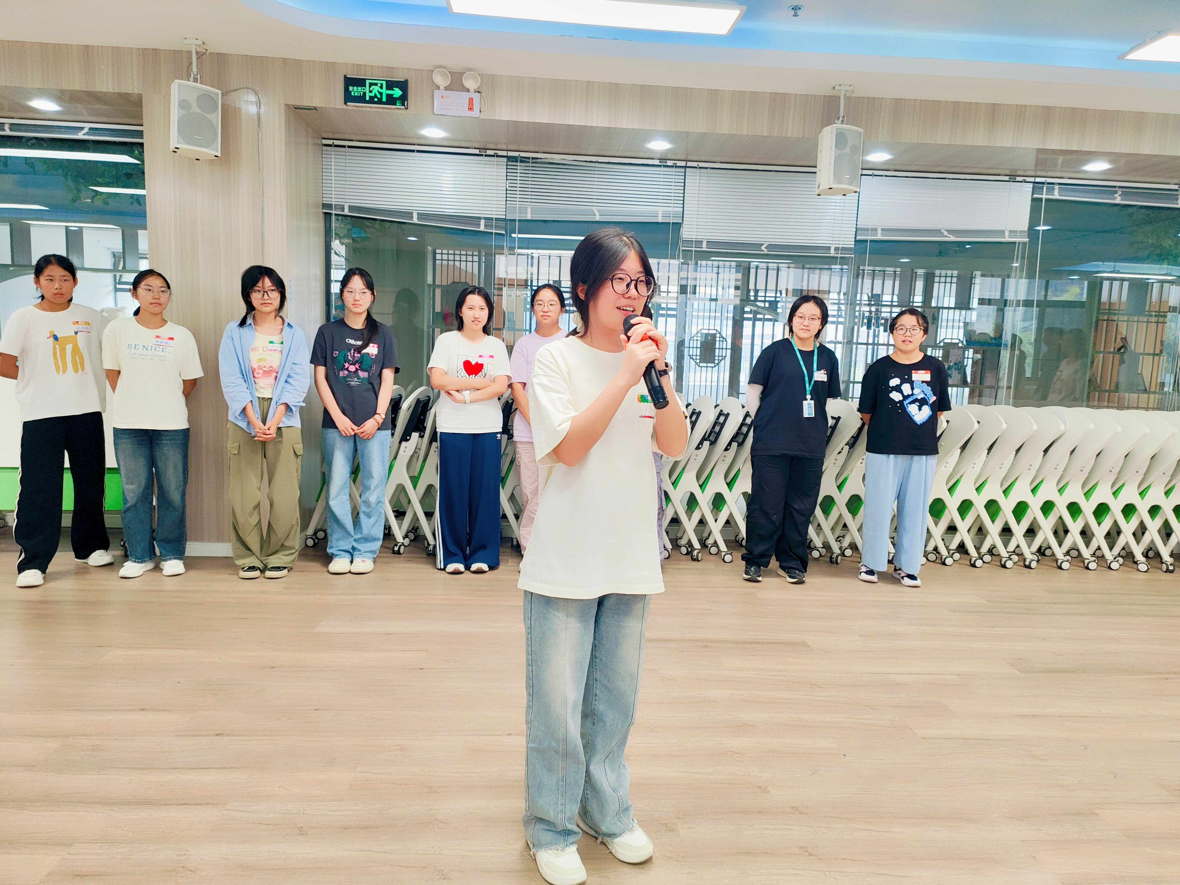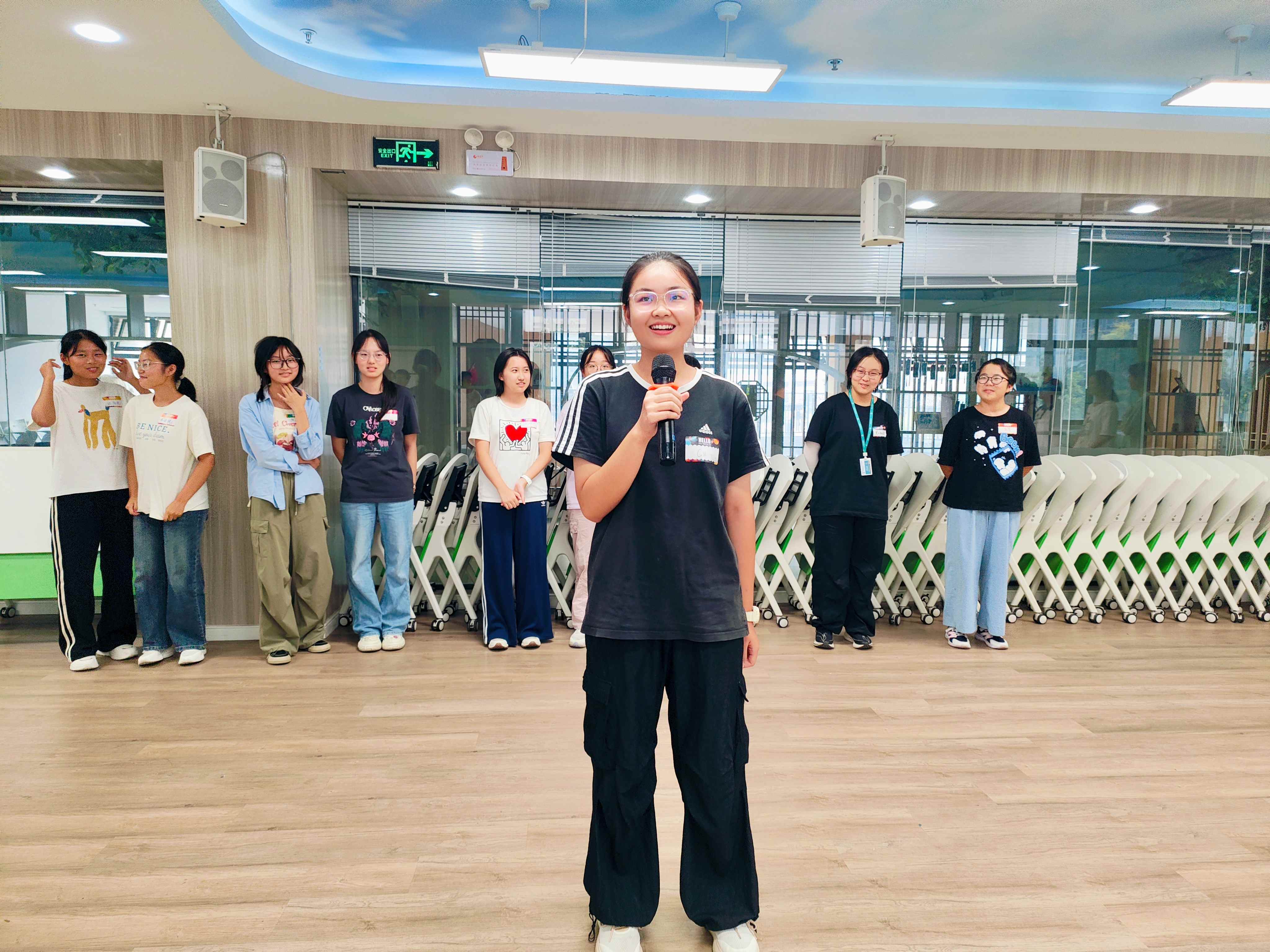 在“昵称呼唤”热身环节,社员们围绕成一圈,每人选择一个创意昵称并进行一句话介绍。全体成员齐声呼唤每一位同学的昵称,仪式感十足,迅速拉近彼此距离,营造出轻松愉快的氛围。