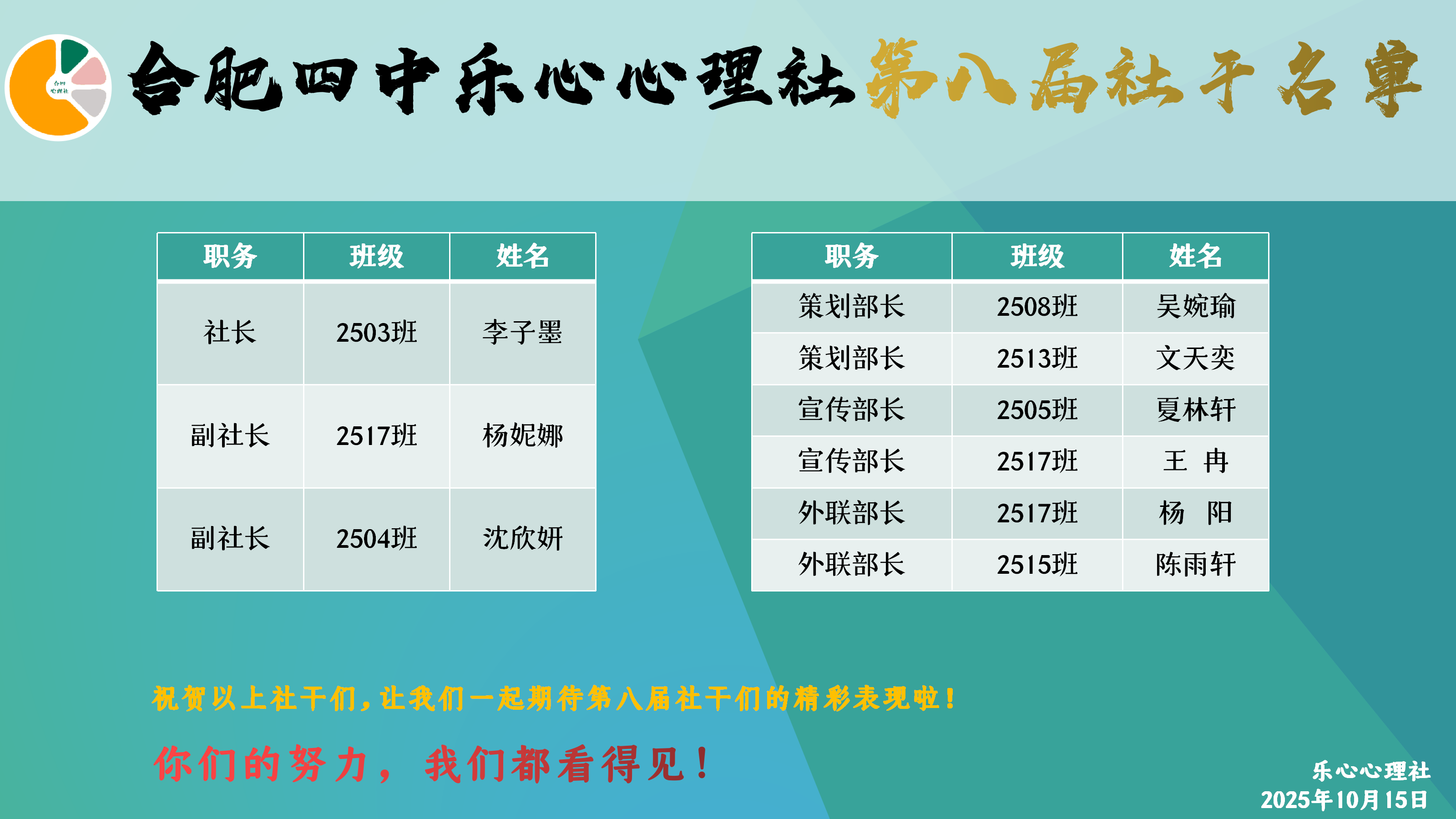 2025年10月15日,合肥四中乐心心理社在心理教师黄莹的带领下,顺利开展了本学期第三次社团活动。本次活动由第八届社干选举与曼陀罗绘画心理体验两部分组成,既有严谨有序的组织建设,也有沉浸表达的心灵之旅。