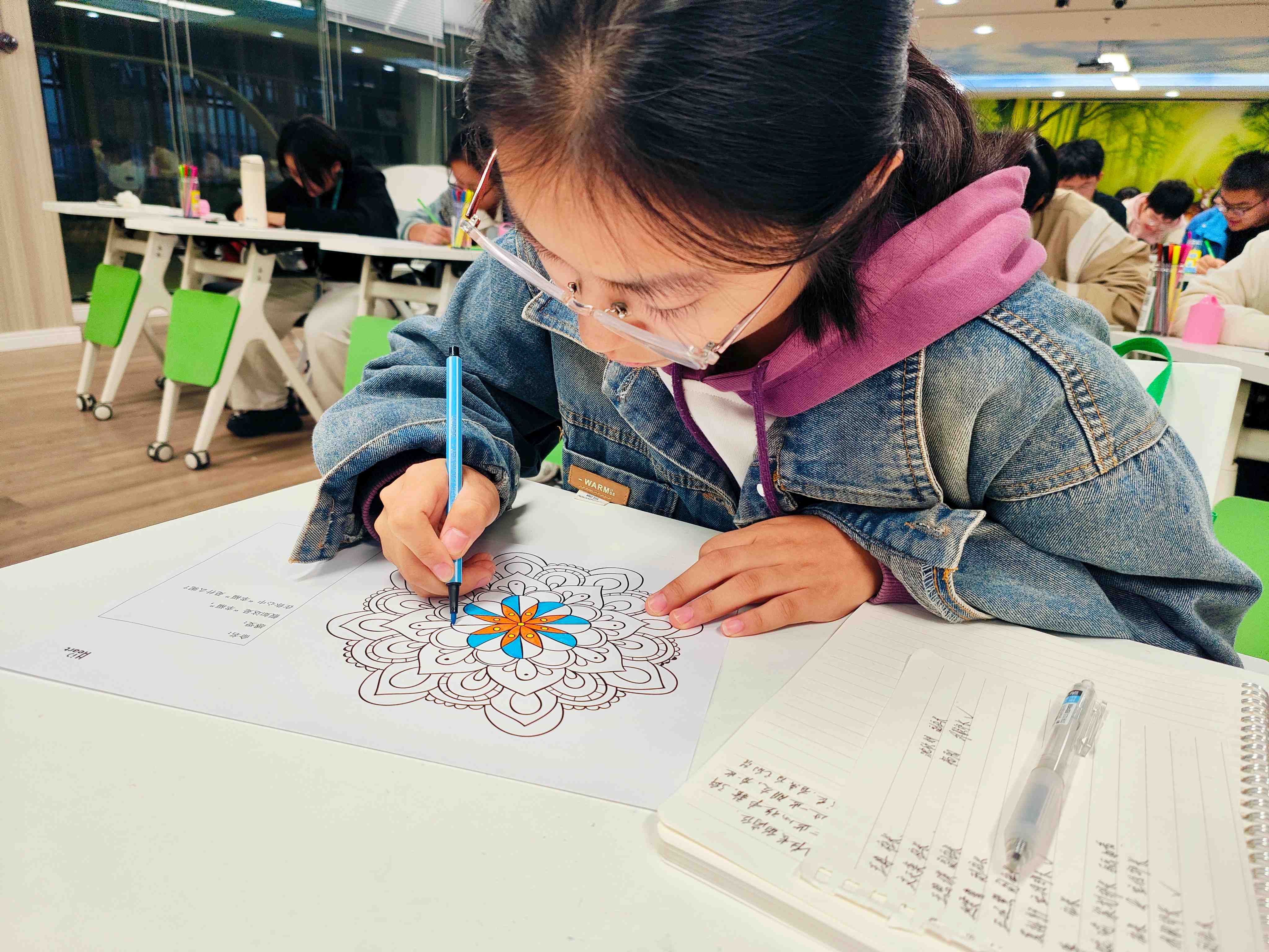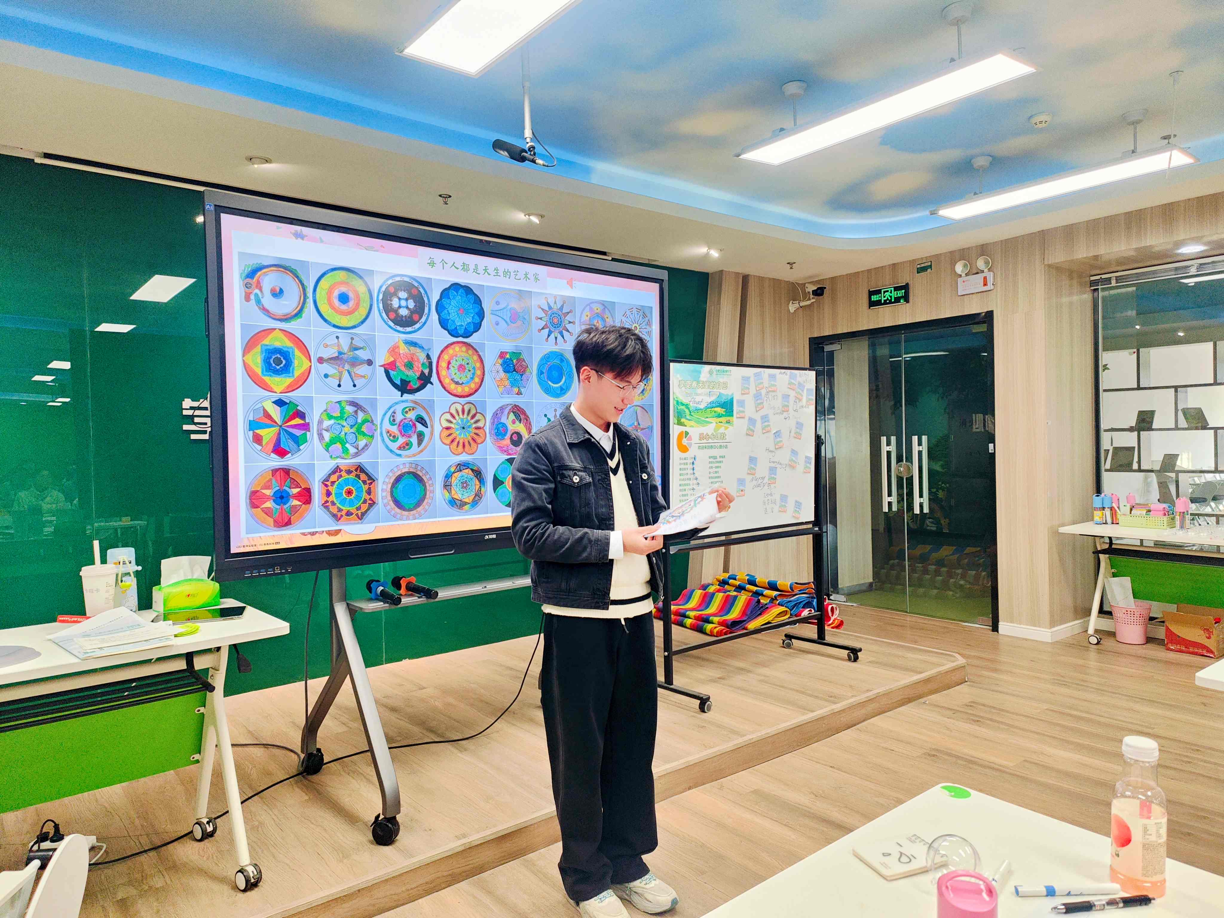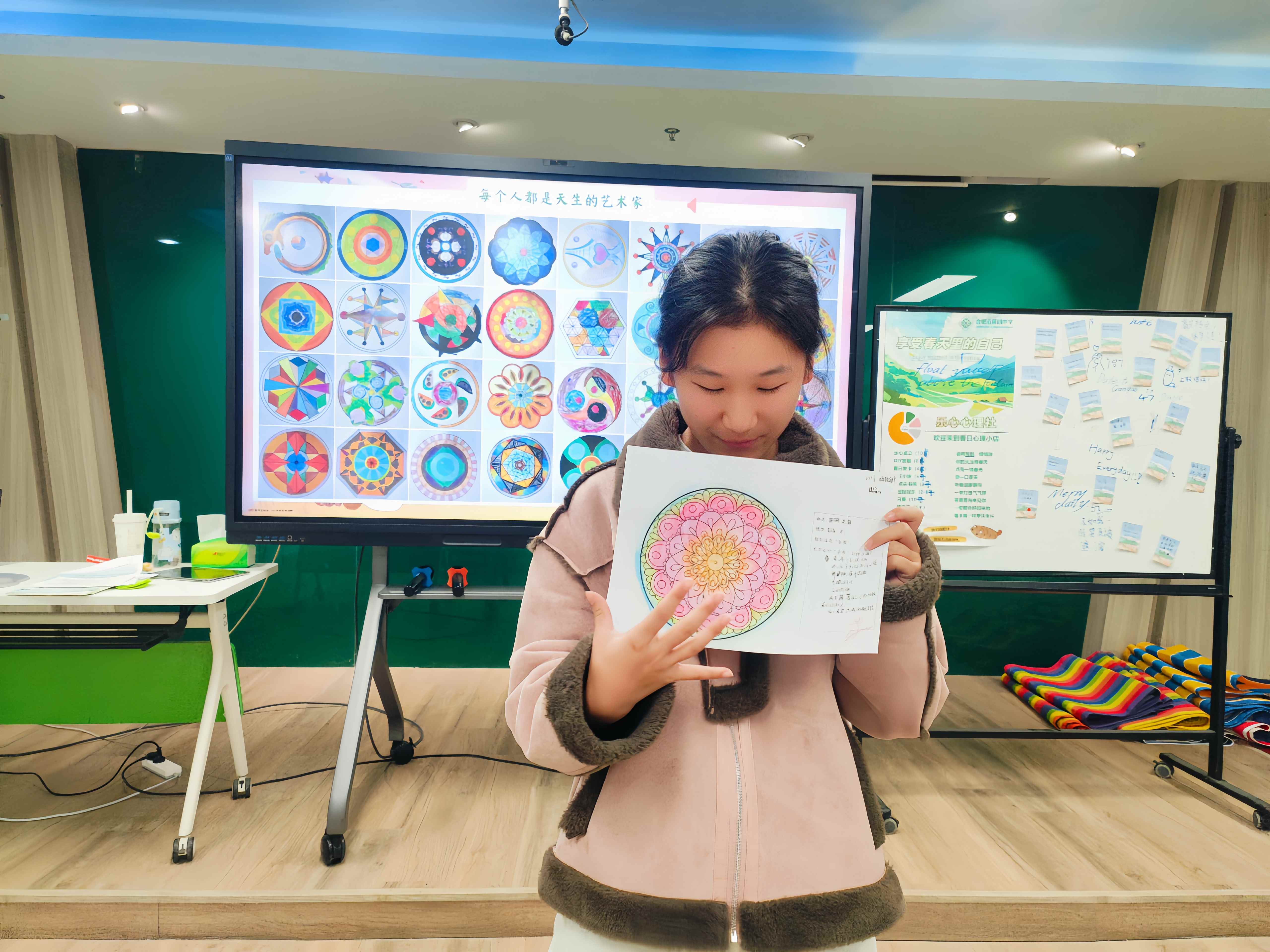 随后,活动进入曼陀罗绘画体验环节。黄莹老师向大家介绍了曼陀罗的心理学背景与疗愈价值。研究显示,曼陀罗绘画能有效缓解焦虑,提升情绪觉察能力。