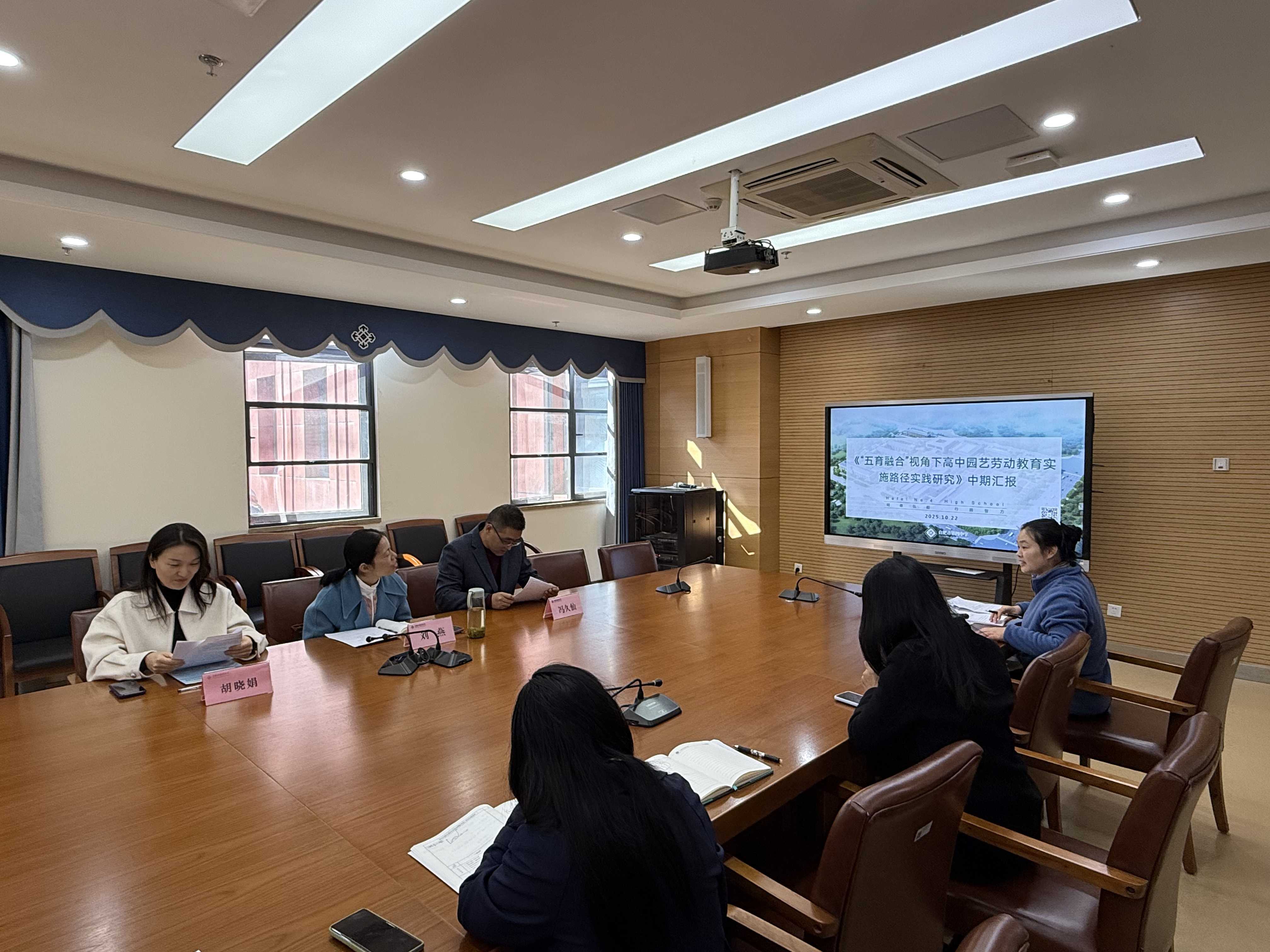 为扎实推进课题研究,提升育人实效,2025年10月22日上午,合肥市第四中学在校内四楼会议室成功举办了市级教育科学规划课题《“五育融合”视角下高中园艺劳动教育实施路径实践研究》中期汇报评审会。